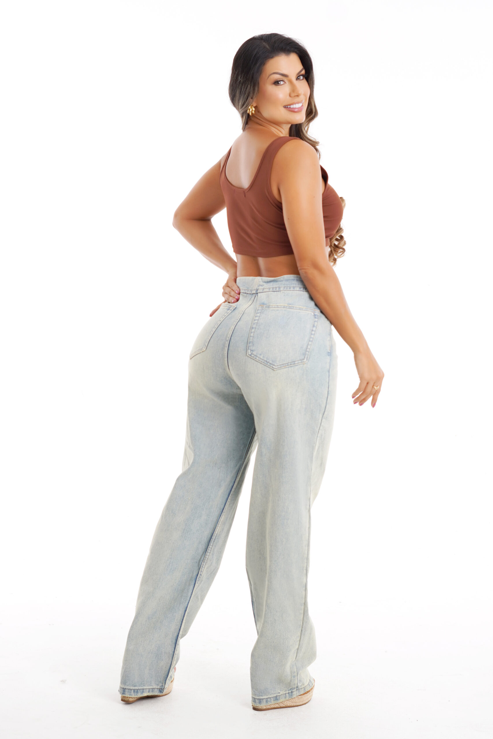 • Tiro alto que resalta la cintura y alarga visualmente la figura